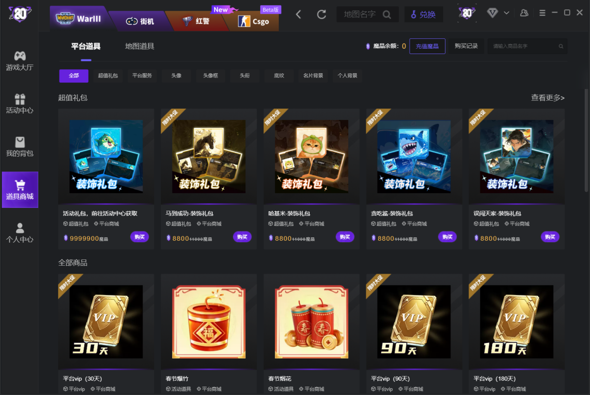 管理平台道具和游戏道具。