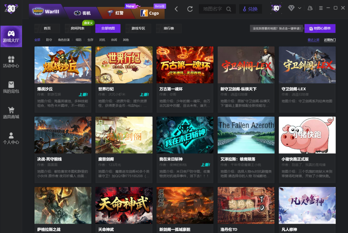 80对战平台是上海魔之雨网络科技有限公司推出的一个专主于推广优秀RPG地图的创新软件,旨在为玩家提供全新的对战体验。该平台汇集了万张精彩的地图供玩家畅玩,包括防、防守、生存等经典RPG玩法。80对战平台提供组队开黑、RTS对战等多种功能,让玩家与好友或全球玩家一同战斗,并通过展示策略和技巧,体验到无与伦比的游戏乐趣。