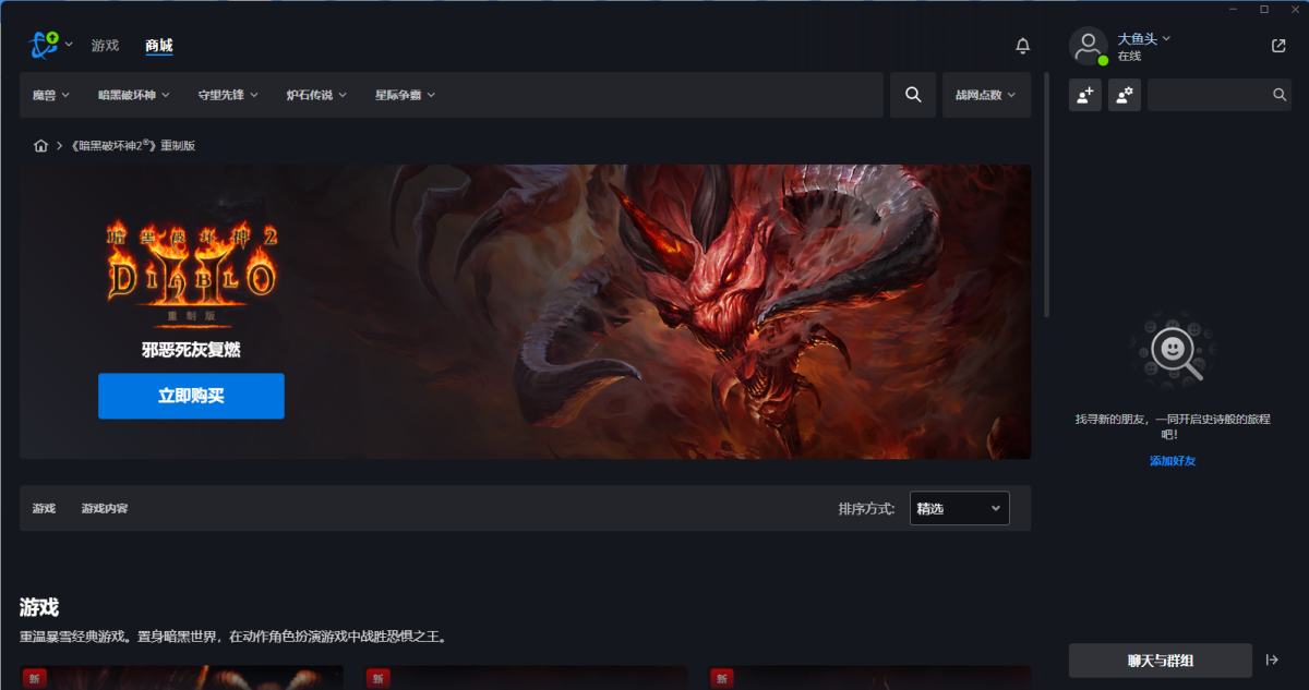 暗黑破坏神2重制版是暴雪娱乐推出的经典ARPG游戏,重制版借助全新的引擎升级,使优化画面与表现力得到次世代的提升;重温暴雪经典游戏。置身暗黑世界,在动作角色扮演游戏中战胜恐惧之王。解锁更多角色栏位与储藏箱,获得更灵活的游戏体验!