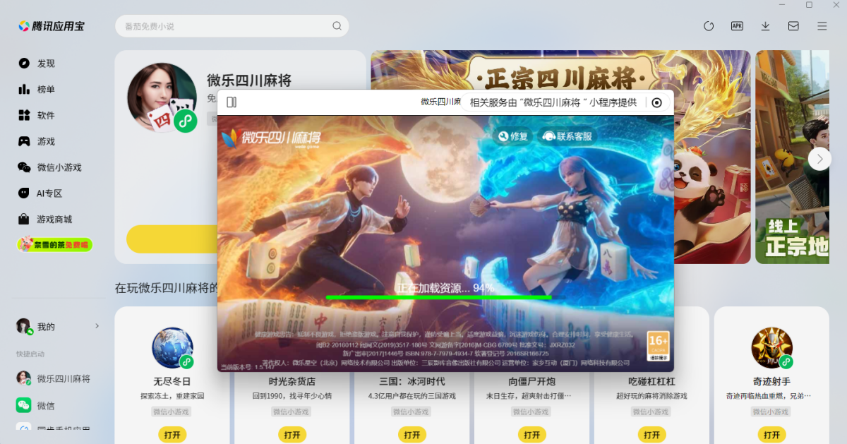第三步:登录后直接拉起【微乐四川麻将】微信小游戏,就可以畅玩了