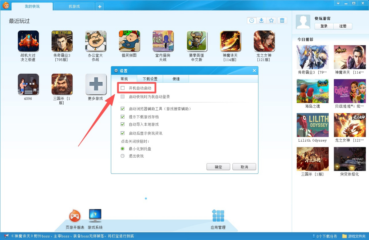 步骤1、打开快玩游戏盒客户端,点击右上角【程序菜单】