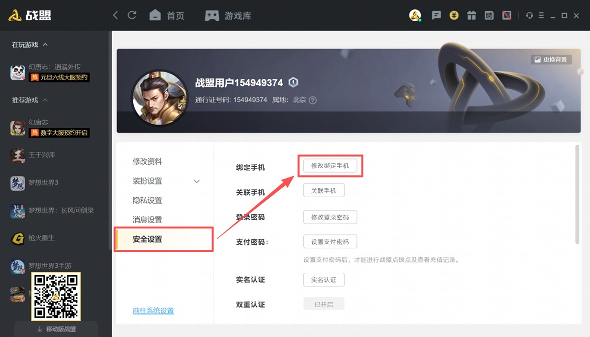 如何更换战盟通行证绑定的手机号?