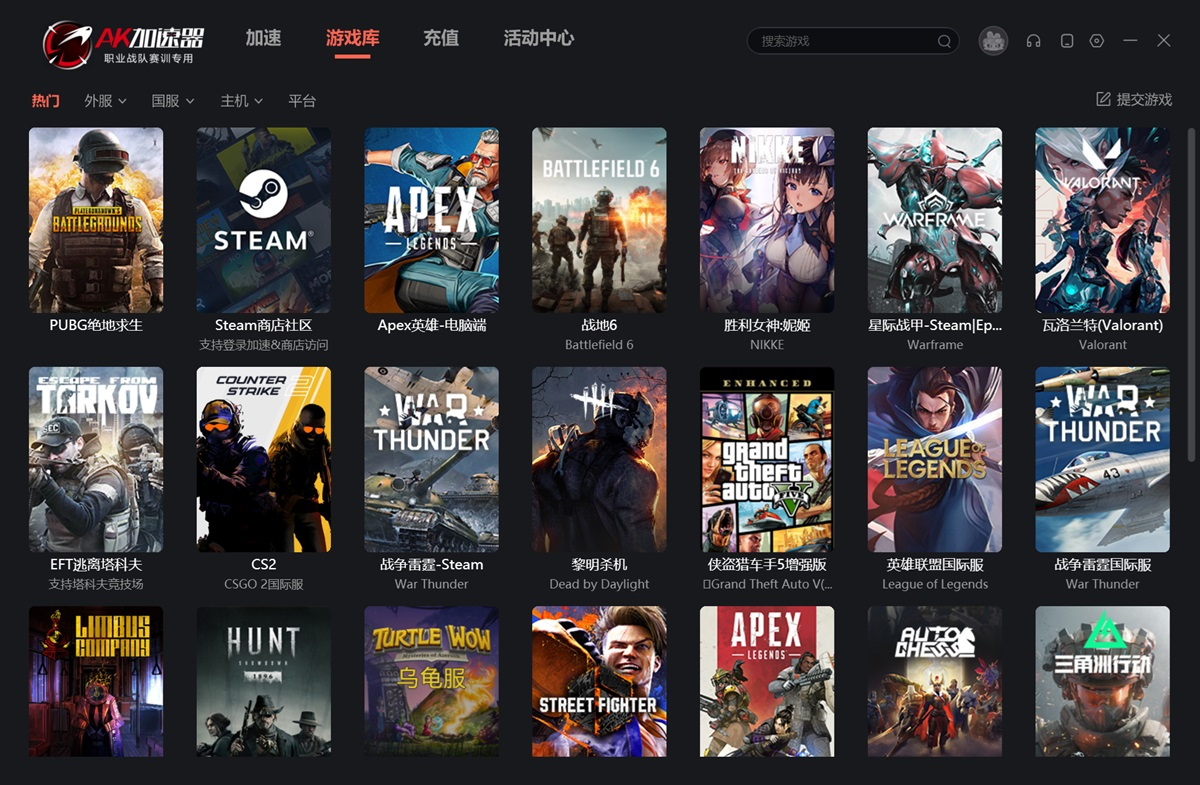 ●多平台支持:AK加速器支持多个游戏平台,无论是PC、主机还是移动设备,都能享受到加速服务,满足不同玩家的需求。