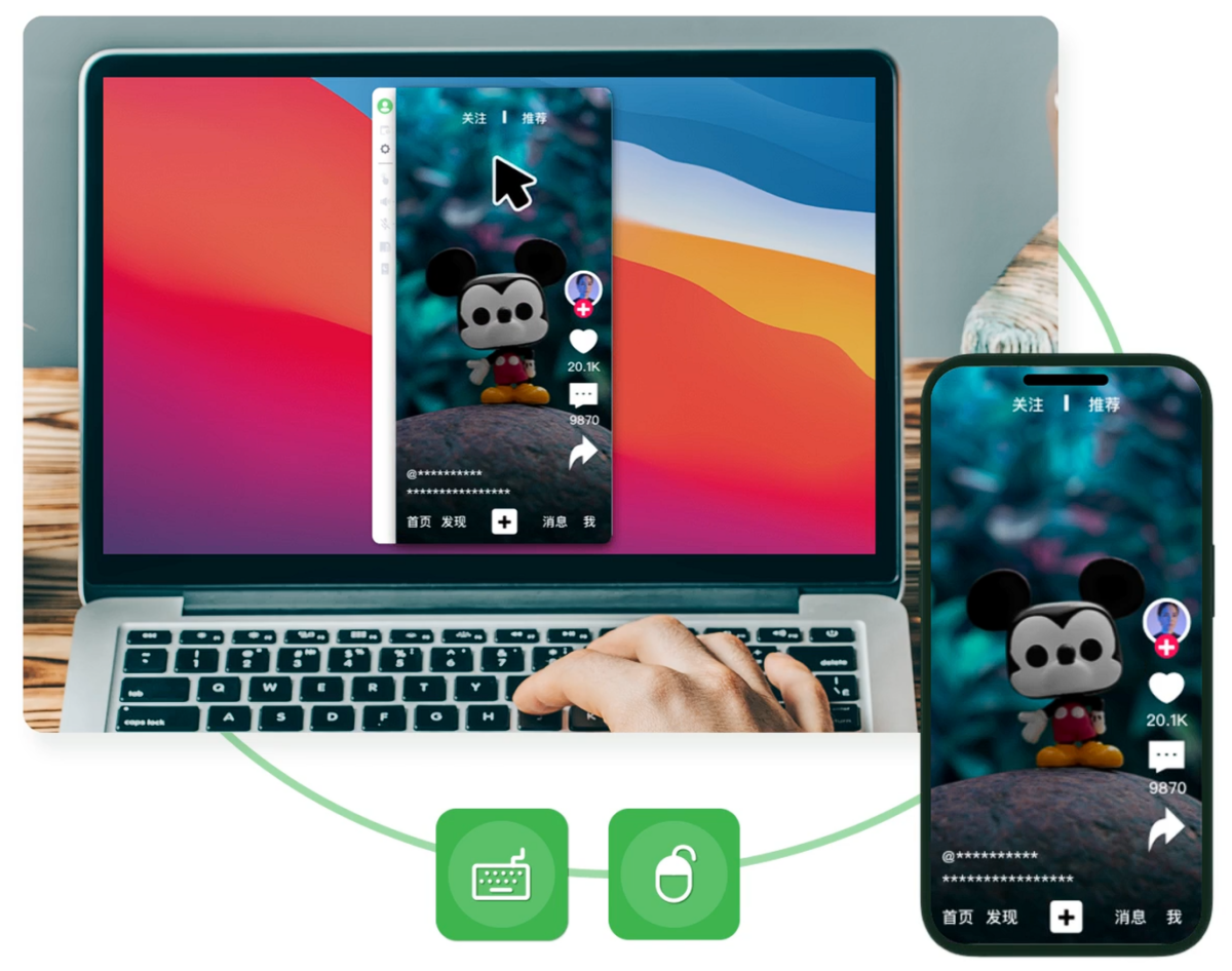 在 Windows/Mac 电脑用鼠标或键盘控制安卓/iPhone/iPad。无需下载模拟器,在 PC 端也能使用移动端的 APP,尽情享受大屏娱乐。