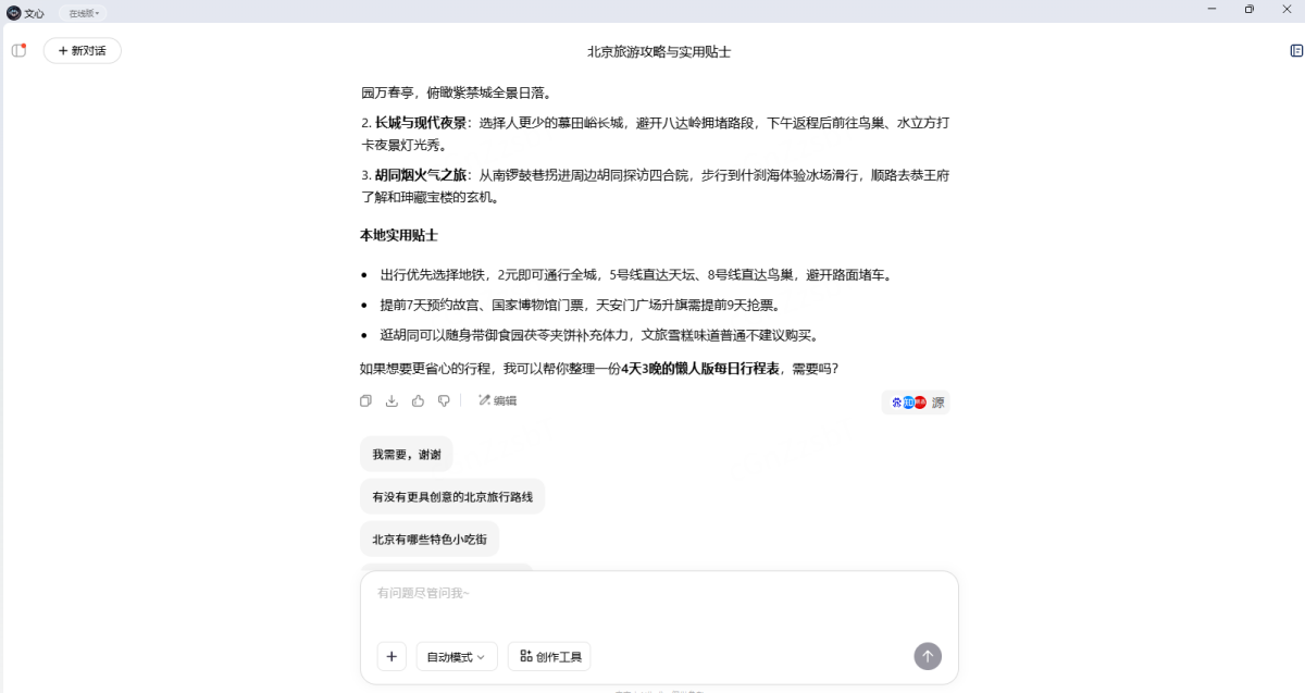 文章与图片创作:无论是汇报材料、美食点评、vlog脚本,各种刚需文创一站式满足。绘画能力大升级,玩转生图。
