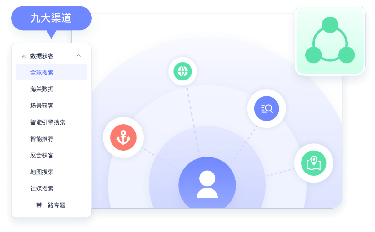 通过全球搜索、海关数据、展会获客等9大拓客渠道,直接找到全球精准买家