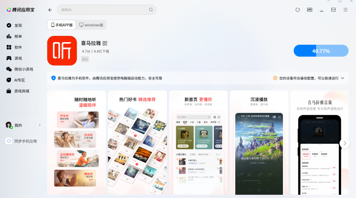 在小杜下载站下载最新安装包,按提示先安装应用宝电脑版(已安装会直接调用打开,未安装应用宝时,手机APP无法独立在电脑上运行),应用宝安装完成后,进入应用宝,继续等待软件安装,完成之后登录账户即可开始使用