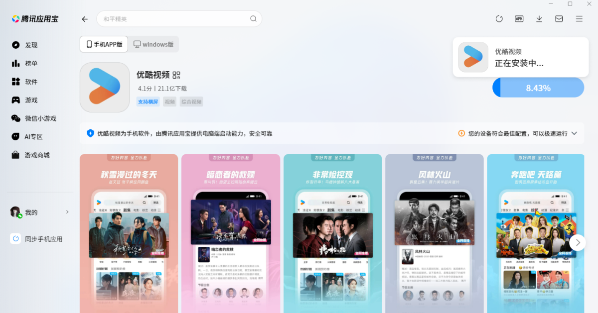 在小杜下载站下载最新安装包,按提示先安装应用宝电脑版(已安装会直接调用打开,未安装应用宝时,手机APP无法独立在电脑上运行),应用宝安装完成后,进入应用宝,继续等待软件安装,完成之后登录账户即可开始使用