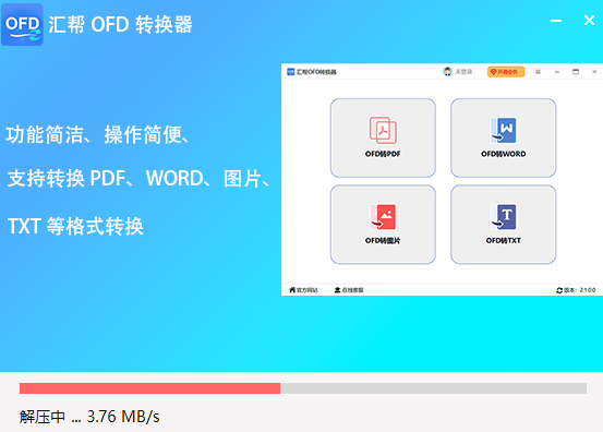 汇帮OFD转换器是一款支持批量OFD文件转换格式的工具,并且能提供其他格式转OFD、OFD转其他格式的功能。软件还支持OFD合并、分割、OFD图片提取、页面提取等功能。