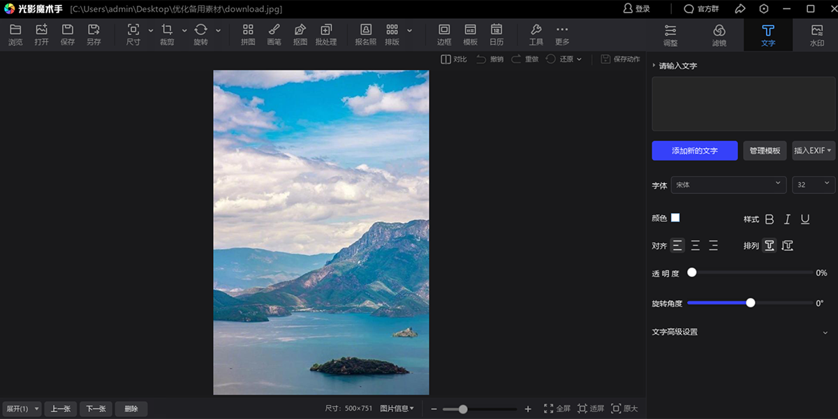 文字水印可随意拖动操作,并且还有横排、竖排、发光、描边、阴影、背景等丰富的效果,用户也可以选择保存为文字模板供下次使用