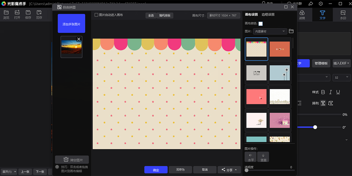自由拼图、模板拼图和图片拼接三大模块,为用户提供多种拼图模板和照片边框选择