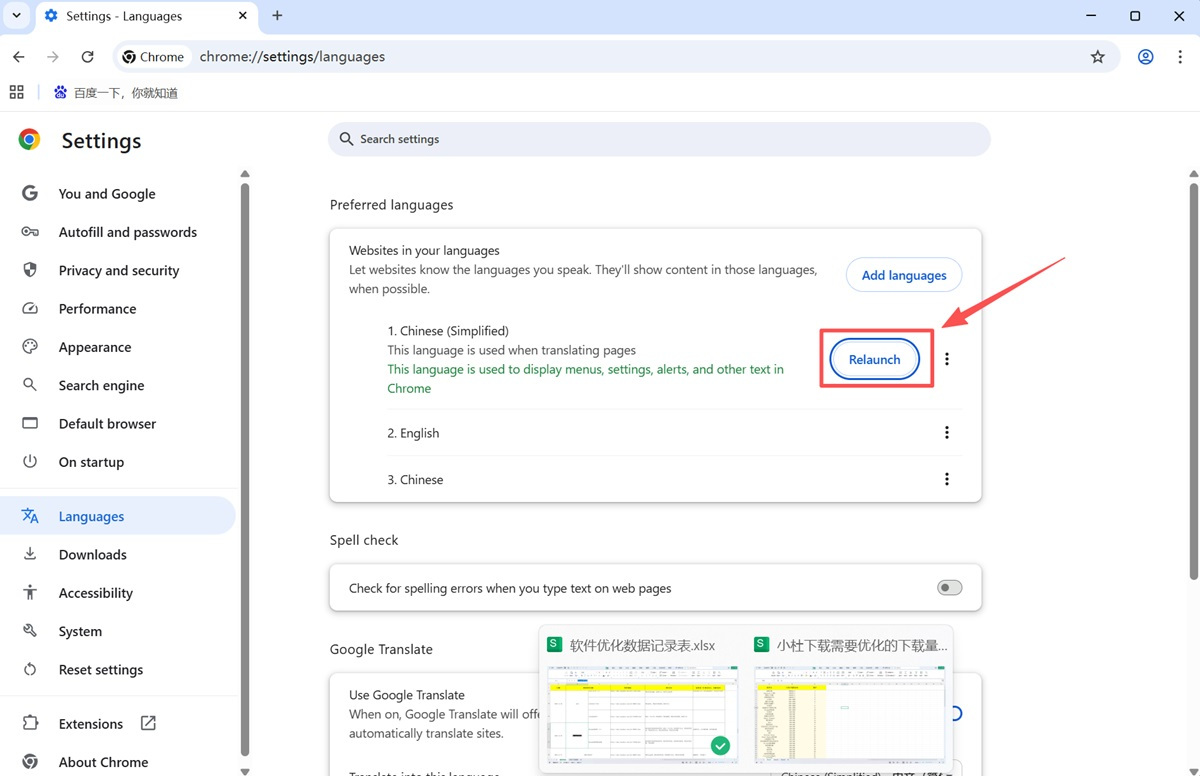 步骤5、完成设置后,点击【重新启动(Relaunch)】,界面语言将切换为中文
