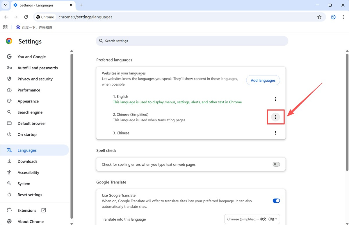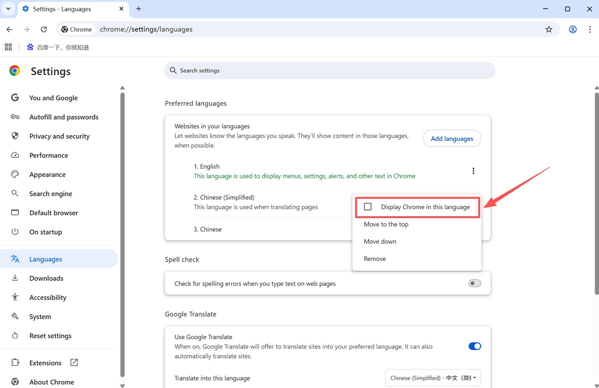 步骤4、选择【以此语言显示Chrome界面内容(Display Chrome in this language)】