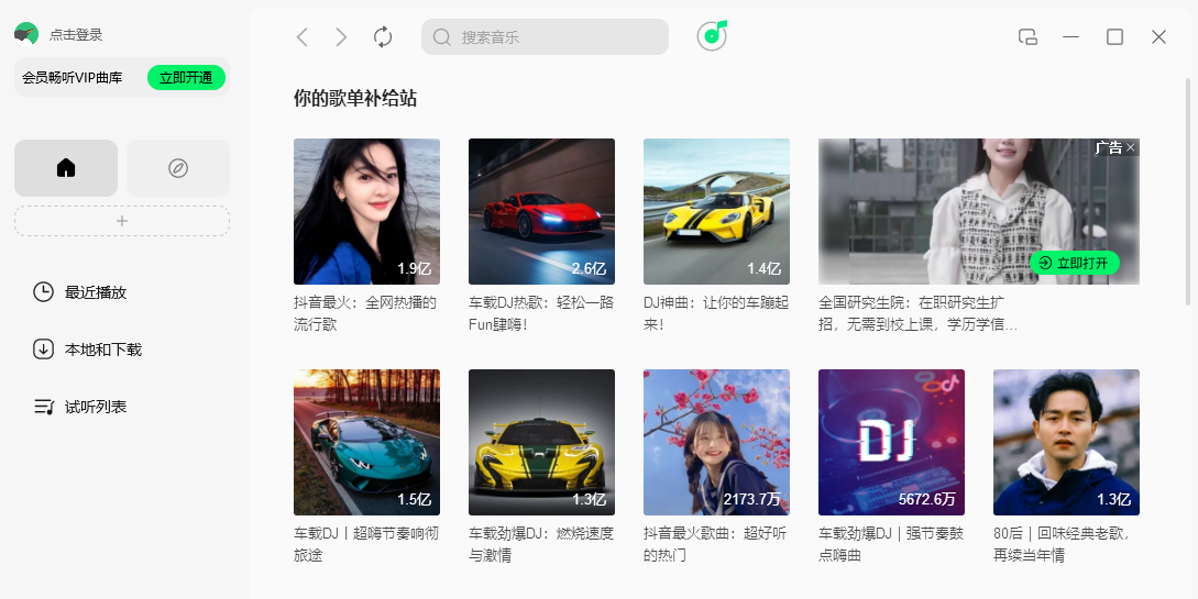 百万量级的正版曲库,行业内领先的播放品质,跟随最新最潮的音乐,探索自由空间。