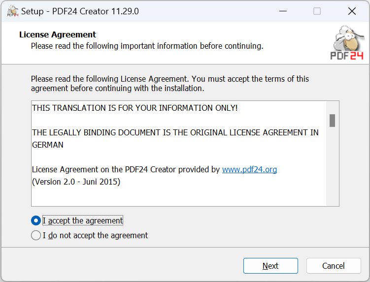 可以的,Windows 用户也可以离线使用 PDF24,即无需互联网连接。只需下载免费的 PDF24 Creator 并安装该软件即可。