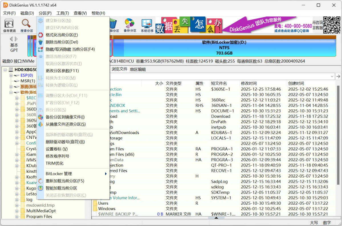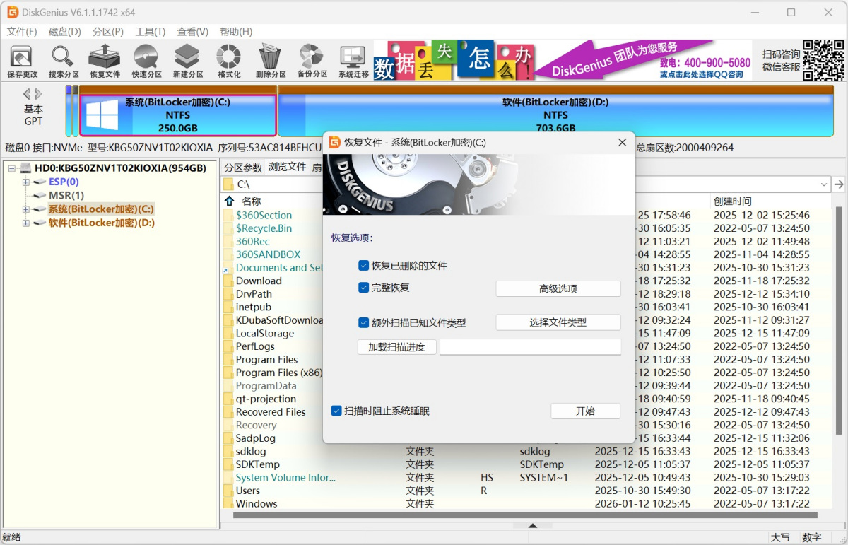 DiskGenius解锁BitLocker分区时不依赖Windows系统,并且支持暂停状态的BitLocker分区。