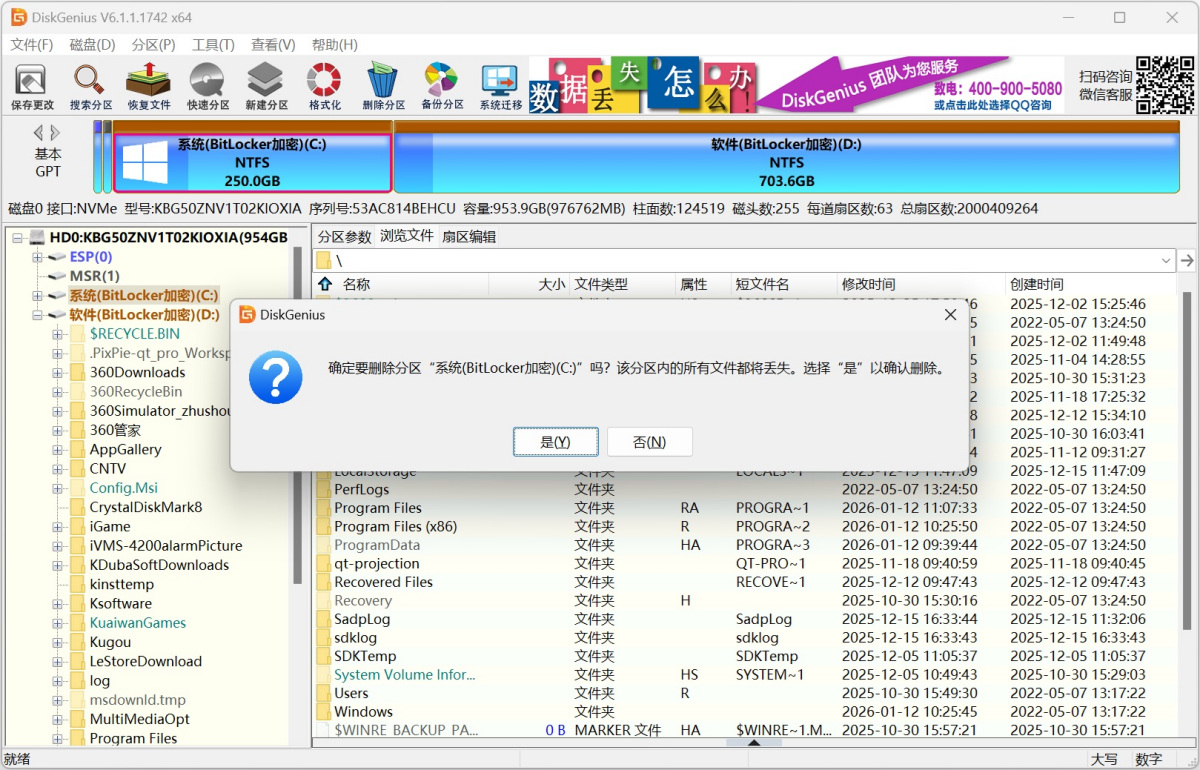 BitLocker加密或解锁过程意外中断或未完成、加密分区丢失或是无法访问等。
