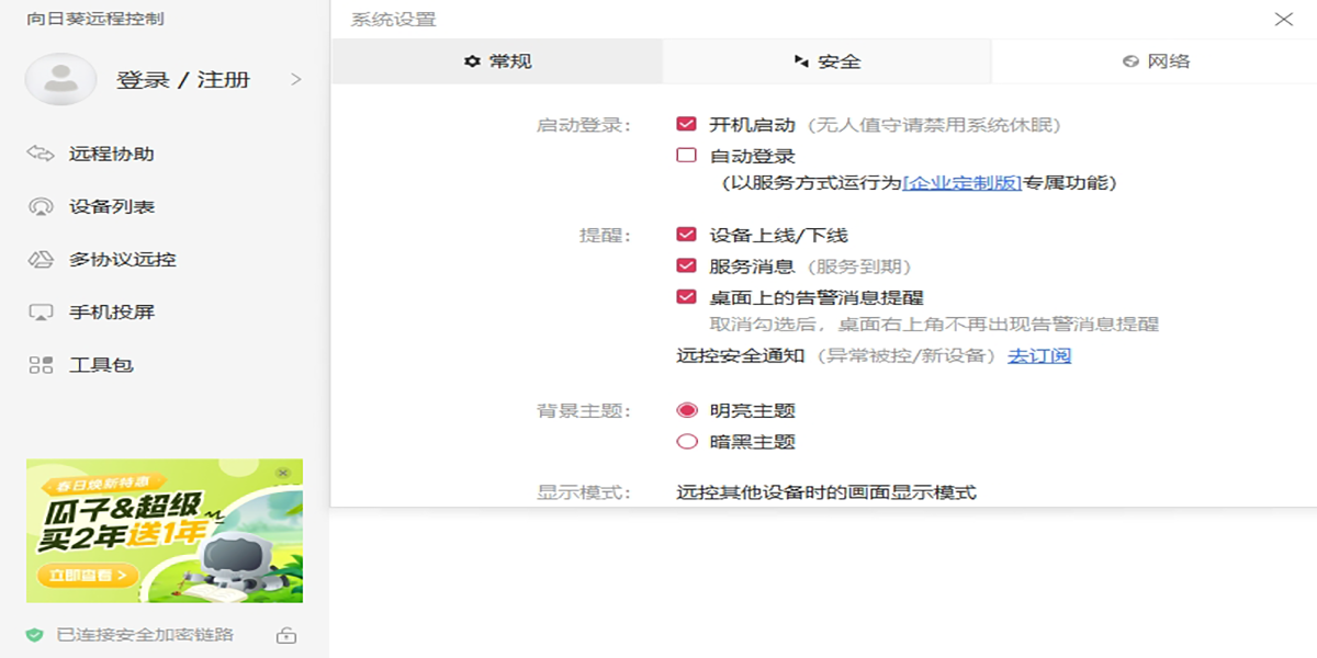 向日葵远程控制软件是一款拥有多年远控技术经验的远程控制软件,可远程控制手机,远程桌面连接,远程开机,远程管理等,并深入各行各业提供企业远程办公、企业IT运维、技术支持等企业远程解决方案。