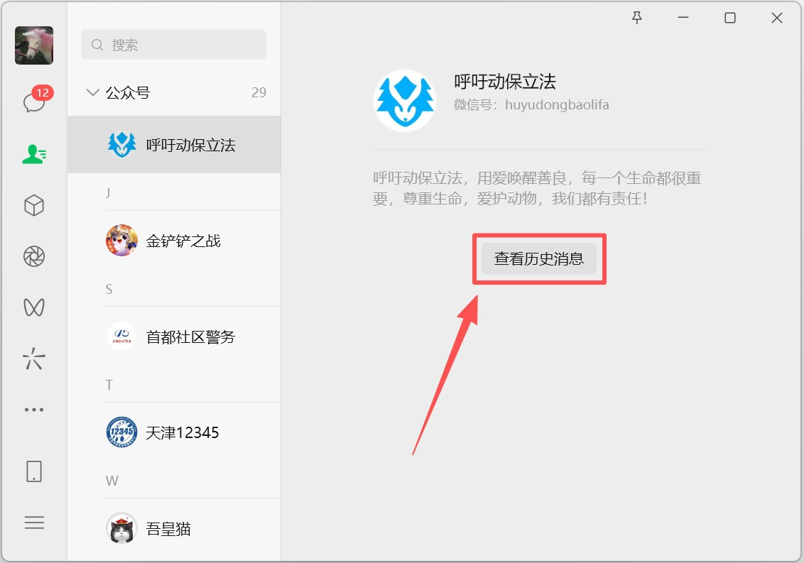 步骤1、打开微信公众号任一账号,点击【查看历史消息】,选择其中一篇进入文章详情。