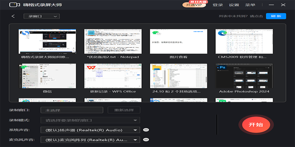 2、此时打开需要录制的应用程序,在窗口模式中选择需要录制的窗口画面。