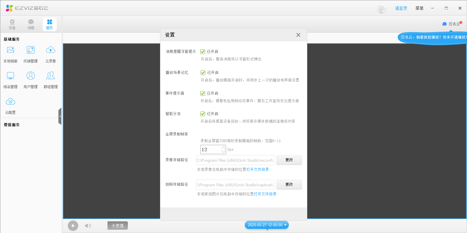 EzvizStudio正式版是一款非常不错且高端好用的萤石云视频电脑客户端,EzvizStudio正式版是针对远程监控进行研发推出的工具;主要是在电脑上运行,将视频的功能、监控摄像头硬件等结合起来,对您需要的监控区域进行设置,就可以完成店铺、家里、办公场所的动态监控;软件和其他相同类型的监控设备比较,画面更加的清晰,操作也更加的方便快捷,并且是中文的语言,无需担心使用的问题!