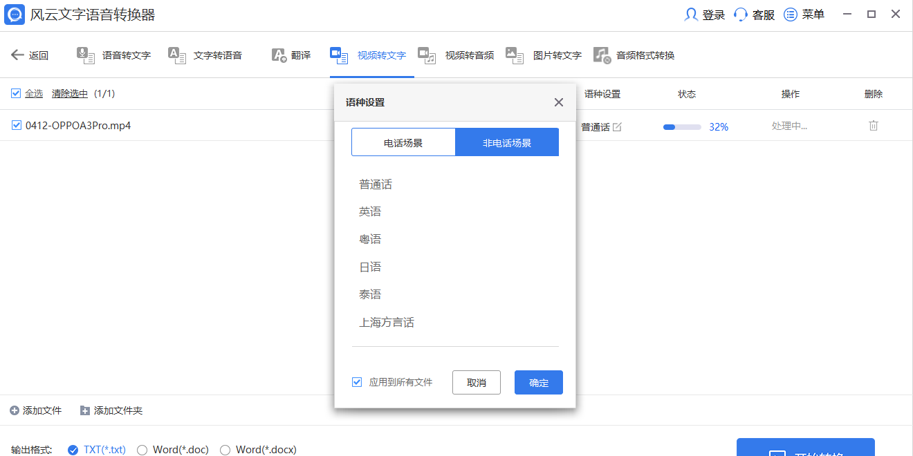 各种音频格式任意选择,一键拖拽,批量完成。高精度识别各国语言, 功能强大!