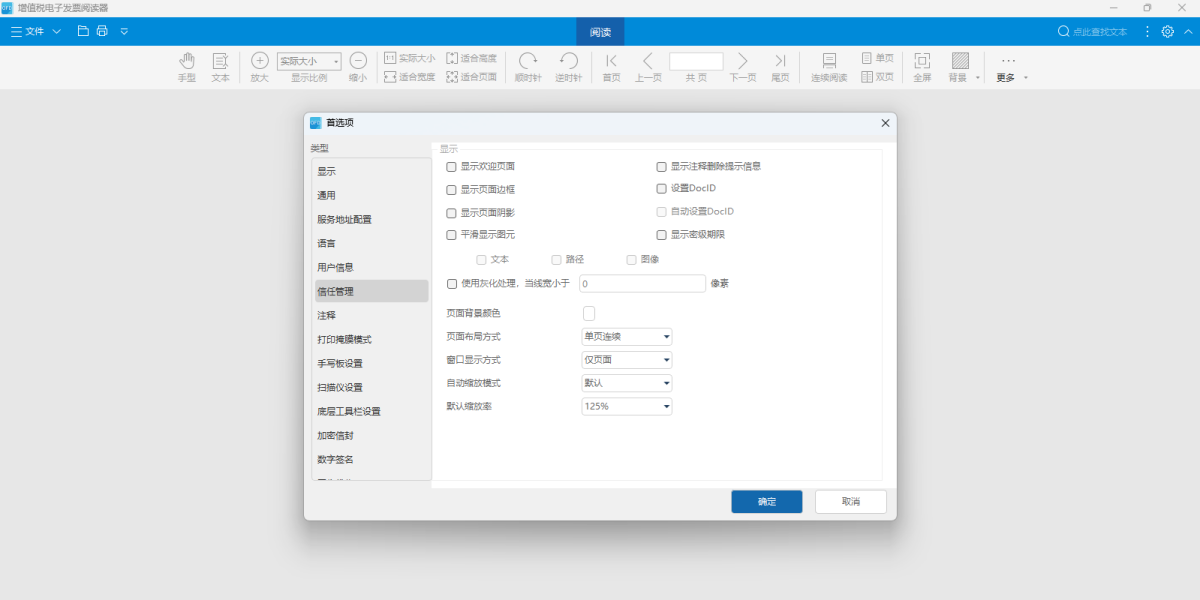 1)版式电子发票阅读功能。双击电子发票或从按钮选择待阅览的电子发票可打开增值税电子发票阅读器并对发票进行阅览,也可以通过缩放、旋转、翻页等功能辅助阅览。