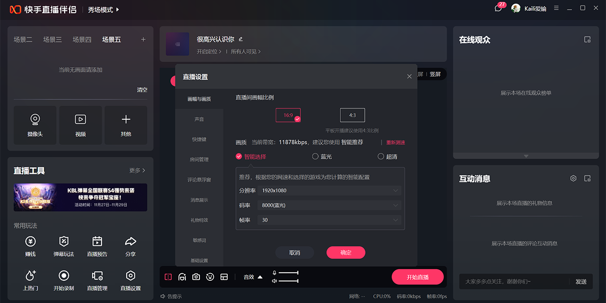 【一键开播】只要在快手平台有直播权限的用户都可以使用伴侣进行直播。支持超清游戏画面、自定义直播封面,一键开启游戏直播之旅!