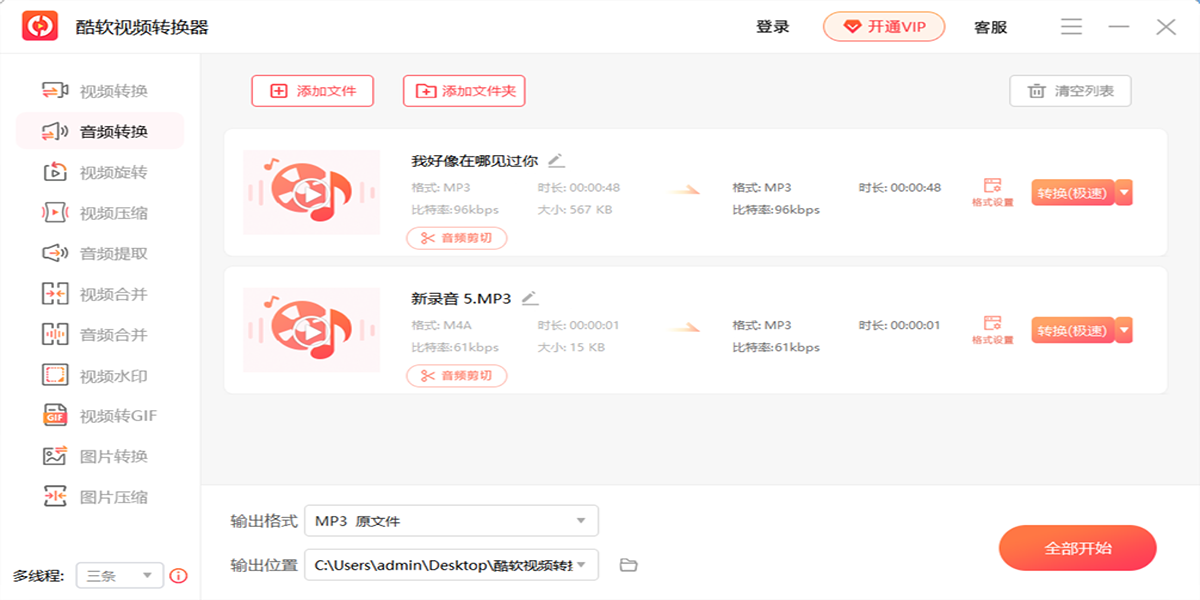支持MP3、WAV、M4A、FLAC、WMA等多种格式转换