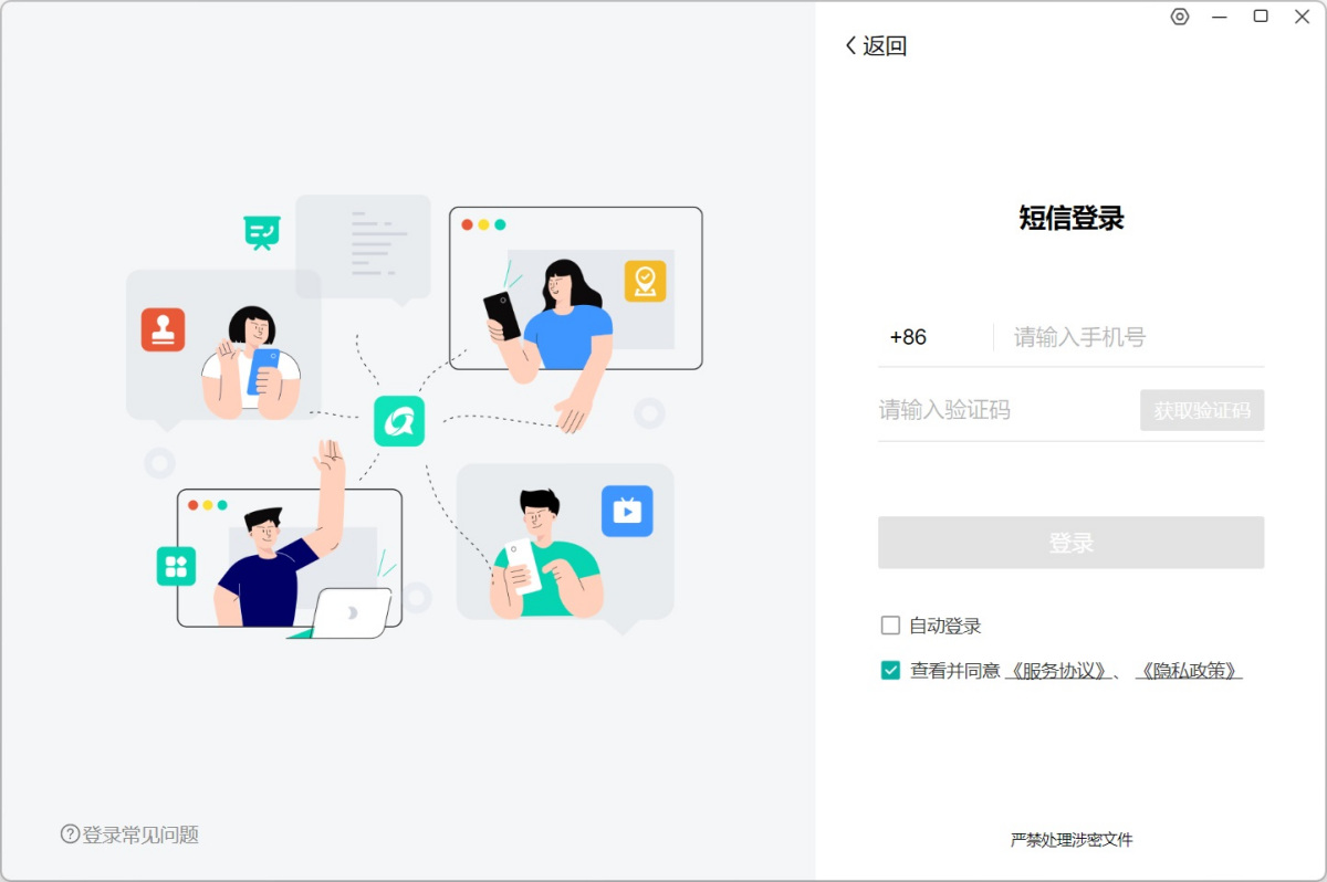 步骤1、打开移动办公客户端,勾选同意协议后输入手机号和验证码进行【登录】