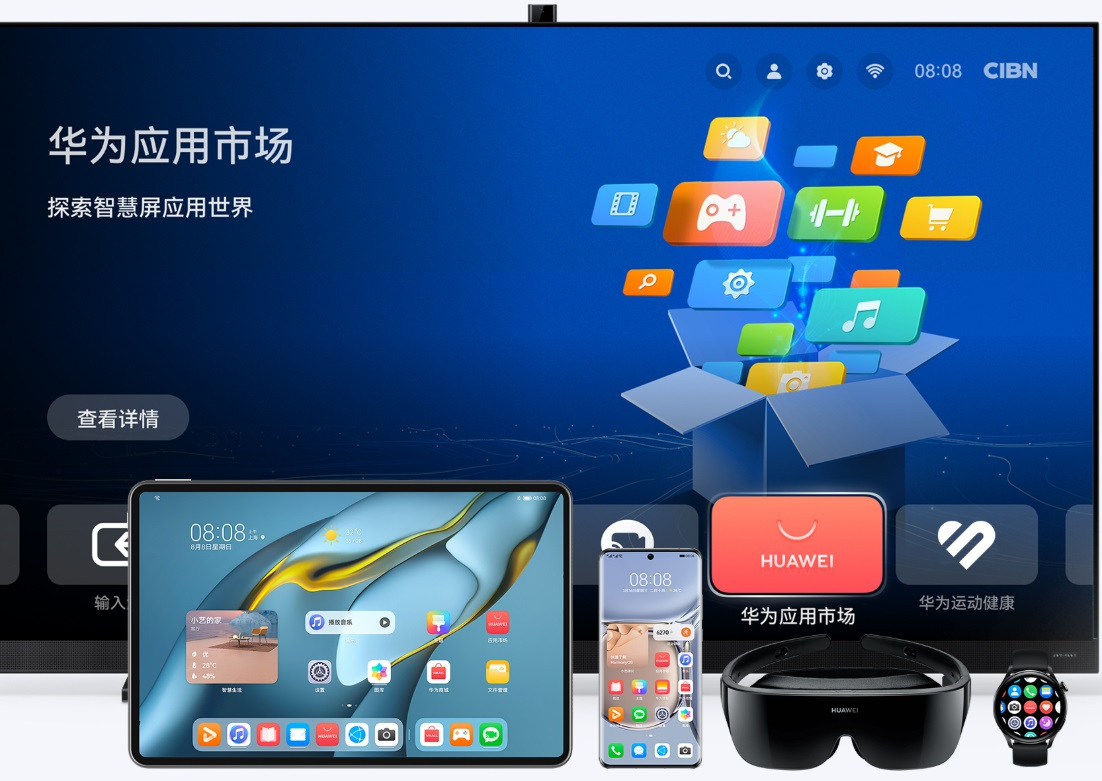 在手机、平板、PC、智慧屏、穿戴、车机及 VR 等多终端设备中均能通过华为应用市场下载安全优质的应用