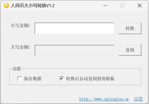 “大写金额”右侧设有“复制”按钮,用户可点击将转换后的文字直接复制到剪贴板,便于粘贴到发票、合同、支票等文档中,避免手动打字出错或耗时。