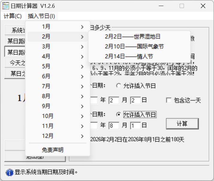 增加“包含这一天”复选框。例如2026年1月10日距离2026年1月12日2天,而如果把2026年1月10日算在内,那么就是三天了。